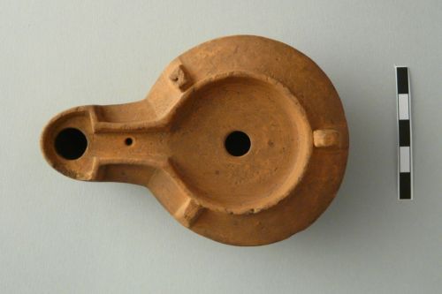 sulla spalla tre bugnette, disco ribassato con foro di alimentazione centrale; foro di sfiato su canale; fondo leggermente concavo delimitato da due cordoni a rilievo tra due solcature