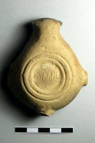 il marchio AIMILI è presente su una lucerna identica con disco decorato dalle nozze di Venere. Lo stesso nome, in altre forme, è presente su numerose lucerne. L'iconografia della cicogna con la serpe nel becco appartiene alla sfera mitologica ed è pertanto un'ipotesi possibile che il ceramista avesse una predilezione per i temi mitici