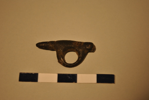 Amuleto a forma di fallo semplice, con grande anello di sospensione circolare.