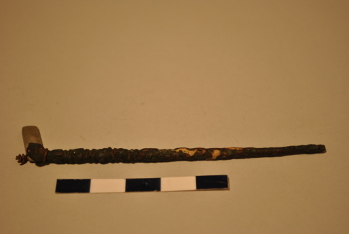 Specillo con piccola spatola circolare inclinata. Stelo a sezione circolare variamente modanato. L'estremità appuntita è frammentata.