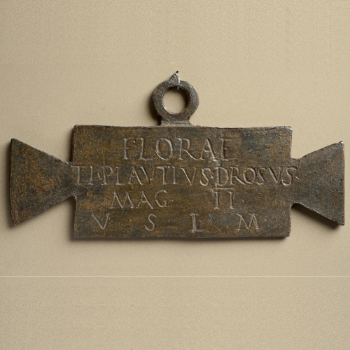 La tabula è stata realizzata fondendo una lamina di piombo, poi rifinita ad incisione.