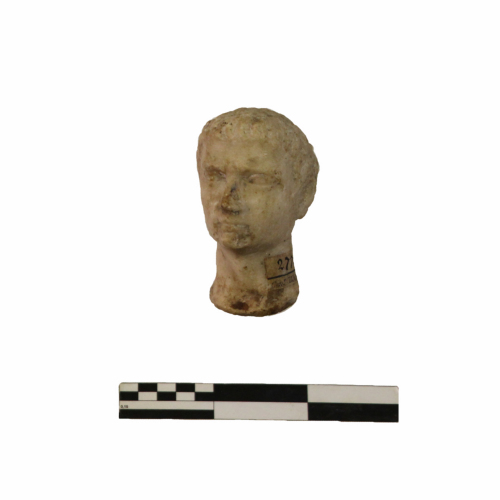 La fronte è ampia e quadrangolare, gli occhi sono grandi e dalla forma allungata, mentre il naso, purtroppo in parte abraso, appare diritto. La bocca ha labbra sottili, chiuse in un'espressione severa.