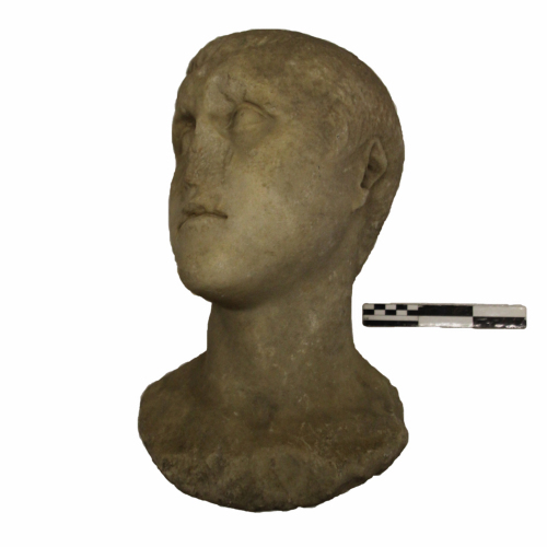 La testa ritrae una figura maschile, dal volto dall'ovale allungato, rivolto verso destra e appena inclinato a portare lo sguardo verso l'alto.