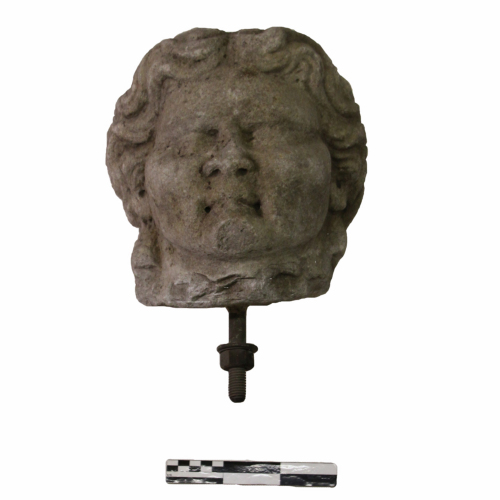Il naso è piccolo e camuso, la bocca ha labbra strette e sottili, ai cui lati si notano dei fori al trapano che ne delimitano gli angoli.