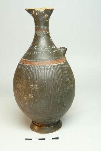 l'oinochoe si inserisce probabilmente in una produzione locale di ceramica di Gnathia, nota anche grazie alle fornaci trovate sull'isola nella prima metà del XX secolo; si tratta di una produzione che deriva dalla Late Canosan, da cui però poi si discosta per morfologia e sintassi decorativa e si caratterizza soprattutto per la combinazione di decorazioni incise e dipinte, in particolare in una serie di oinochai alti e con il collo stretto