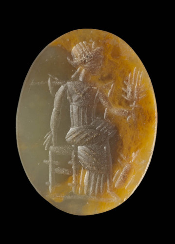 diaspro giallo, ovale piano; intaglio