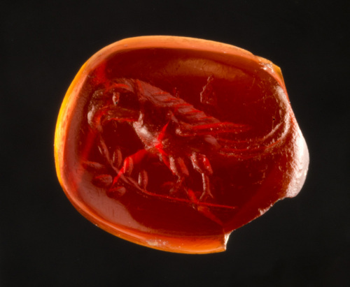 corniola rossa sub-rettangolare convessa; intaglio