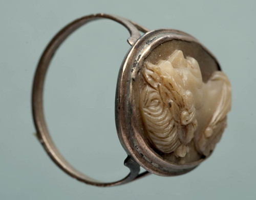 calcedonio-agata (pietra a due strati); cammeo (legato in anello d'oro)