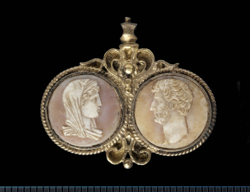 conchiglia a due strati; coppia di cammei circolari