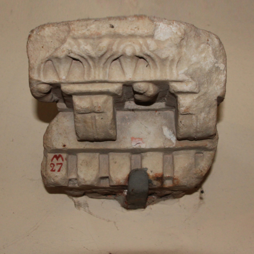 La decorazione è infissa nella struttura muraria dell'edificio a Basilica, voluto per raccogliere i reperti di Concordia. Esso fu costruito a partire dal 1885 e allestito secondo i criteri dell'epoca.