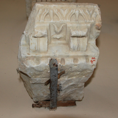 Al di sotto di mensole modanate, si trova un motivo a dentelli fortemente abraso nella sua metà inferiore.