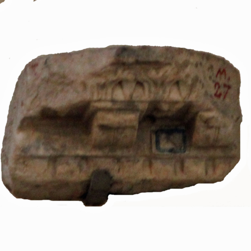 Al di sopra di esso, si individua una fascia, delimitata da almeno un listello inferiore liscio, in cui si trova un kyma lesbio trilobato, costituito da fiori la cui parte superiore non è più percepibile alternati a foglie lanceolate, inscritte all'interno di un nastro, dal lobo superiore arrotondato.
