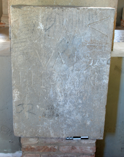 E' probabile che in origine la lastra appartenesse a un edificio monumentale, come suggeriscono il grande modulo e il ductus delle lettere vir, da ritenersi probabilmente la parte finale di una parola del tipo II vir o IIIIIIvir, riferibile a un personaggio importante della comunità concordiese.