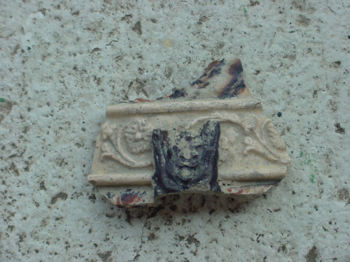 Boccale con corpo a profilo probabilmente troncoconico. La parete è decorata con un motivo a tralcio floreale corrente, racchiuso entro una cornice rilevata.