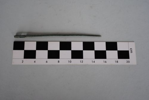 Ago non da rammendo con stelo a sezione circolare. Cruna appiattita pseudorettangolare con foro passante rettangolare.