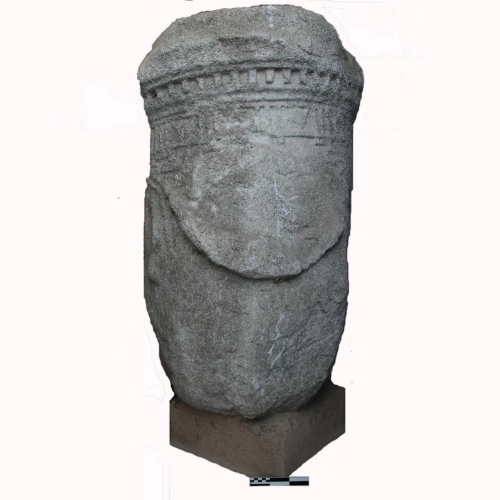 L'ara è conservata molto malamente. La superficie si presenta notevolmente corrosa, tanto da compromettere la lettura delle decorazioni specie per quanto riguarda la parte superiore, che ad oggi risulta liscia.