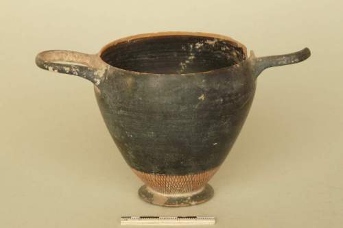 si tratta di una delle forme più comuni nel mondo classico, in uso in Attica già nel VI secolo a.C. che, alla metà del secolo seguente, si arricchisce della decorazione a reticolo. La datazione di questo esemplare si basa su bibliografia e confronti (in Favaretto 1982)