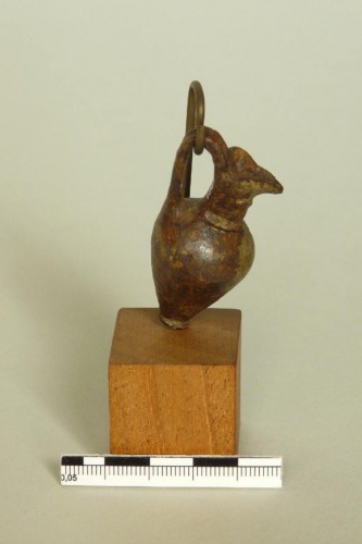 si tratta di una tipologia che deriva dai pendagli a forma di brocca noti in Macedonia nell'VIII secolo a.C., che si adatta però alle forme dell'oinochoe d'imitazione che compare nei corredi del periodo Piceno IVA; pendagli di questa forma si trovano anche in Italia settentrionale, oltre che nella collezione di Torcello, ad esempio a Como e nelle raccolte del Museo Civico Archeologico di Milano