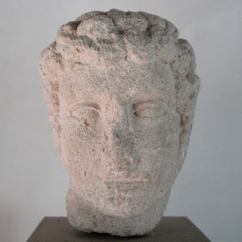 La testa, realizzata scolpendo un piccolo blocco di calcare a realizzare una scultura di dimensioni inferiori al reale, ritrae un giovane uomo dal volto caratterizzato da un ovale pieno, rotondo, lievemente inclinato verso destra. La fronte è stretta poiché coperta dalla folta capigliatura; al di sotto di essa, arcate sopraccigliari profonde ombreggiano gli occhi, dal taglio allungato, le cui palpebre superiori sono appena socchiuse. Il naso, in parte abraso, è lungo e diritto. La bocca, dalle labbra sottili, è socchiusa e piegata in un lieve sorriso.