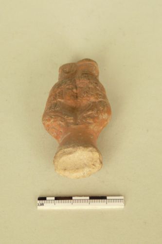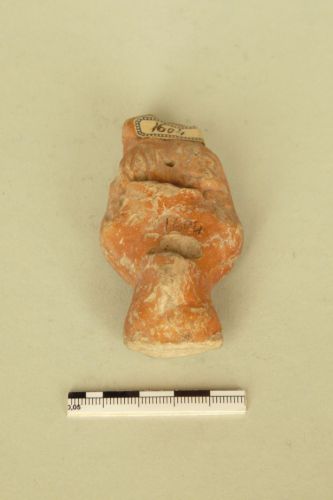Ansa decorata con i busti di Isis e Serapis affrontati. Argilla beige, vernice rossa opaca.
