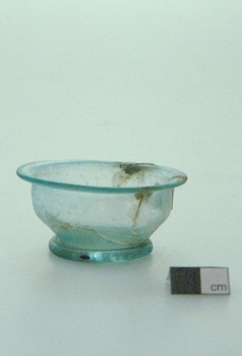 labbro esoverso con bordo arrotondato, corpo a pareti convesse, piede ad anello applicato; vetro incolore, trasparente