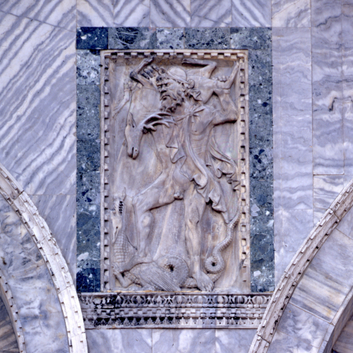 Il rilievo è stato qui impiegato per decorare la facciata della basilica di San Marco. Il tema di Ercole riccorre più volte in basilica.