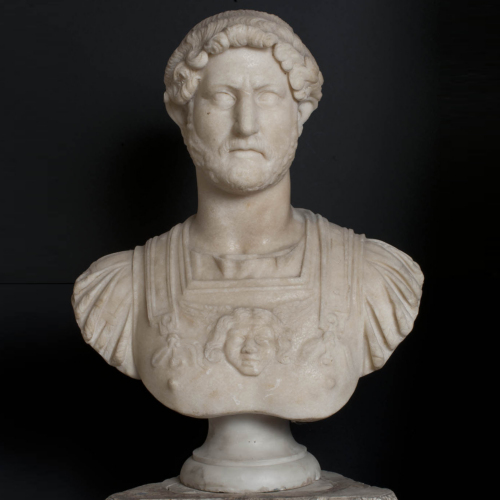 L'Augusto indossa tunica e corazza, decorata da una testa di Medusa.