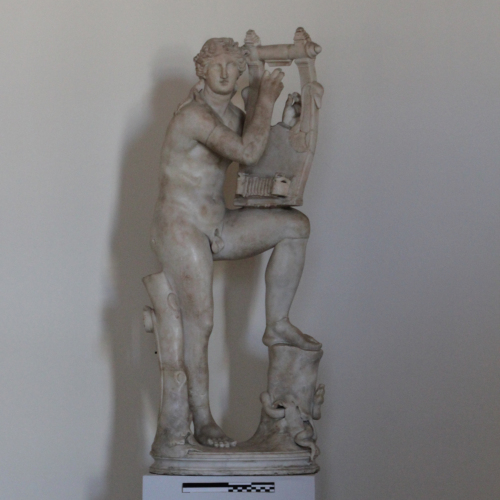 La scultura ritrae un giovane uomo appoggiato tra due tronchetti nell'atto di suonare una cetra. La gamba sinistra è sollevata e poggia sul tronchetto più basso da cui emerge un serpente. Essa sostiene lo strumento mentre la destra è stesa a sorreggere il peso del corpo. Il volto, dall'ovale pieno, è lievemente inclinato a destra ed è incorniciato da lunghi capelli mossi, divisi sulla fronte da una scriminatura centrale in due bande laterali, che si raccolgono sul retro. Alcune ciocche ricadono sulle spalle.