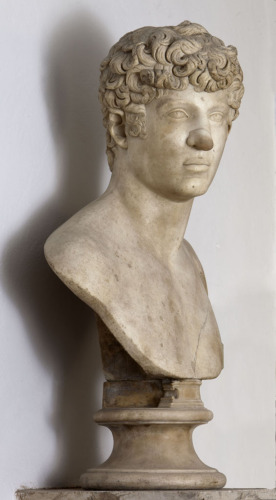 A differenza di alcune riproduzioni affini in bronzo, conservate nellAntisala della Pinacoteca di Napoli e nella Residenza di Monaco, senzaltro riferibili alletà moderna, non vi sono valide ragioni per dubitare che il ritratto di Venezia sia autentico. Diverse, piuttosto, sono le interpretazioni in merito al personaggio rappresentato: alcuni, tra cui Dietrichson e Marconi, hanno ritenuto di poterlo identificare con Antinoo, il giovane bitinio amante di Adriano, che morì in Egitto nel 130 d.C. affogando nel Nilo in circostanze oscure. Per quanto il busto abbia una notevole affinità tipologico-stilistica con le effigi di Antinoo, è più probabile, come già indicato da Anti e ribadito poi da Traversari, che esso rappresenti il ritratto generico di un giovane del periodo adrianeo. Un esame accurato dei particolari iconografici ne scoraggia infatti un accostamento puntuale, che ha però il merito di suggerire un preciso inquadramento cronologico-stilistico del pezzo. Validi confronti sono piuttosto i numerosi marmi delliconografia privata di epoca adrianea, tra cui si ricordano quelli conservati presso lo Staatliche Museen di Berlino, il Museo Nazionale di Napoli, il Museo Capitolino e il British Museum.