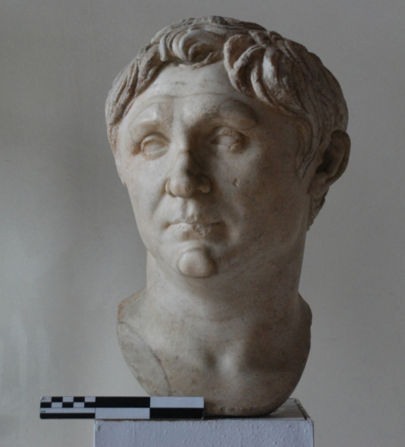 Ritratto di Gneo Pompeo, con capigliatura abbondante e disordinata, a ciocche lunghe e mosse che coprono le tempie, ben aderenti alla scatola cranica, mentre al centro della fronte sono scomposte e sollevate. La fronte, aperta a forma trapezoidale, è solcata da alcune rughe orizzontali, leggermente ondeggianti, mentre la bocca è sottile e il mento pronunciato e appuntito. Il volto presenta uno sguardo patetico evidenziato dal rigonfiamento delle arcate sopracciliari, dagli occhi piccoli infossati, dal rilievo muscolare in prossimità delle pendici del naso e delle labbra, e dalla torsione del collo.