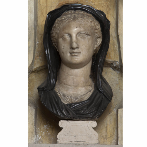 Il busto ritrae una figura femminile il cui volto, lievemente inclinato a sinistra, è un ovale pieno, incorniciato da capelli divisi in due bande ondulate da una scriminatura centrale e annodati sulla nuca da una sottile benda. La folta capigliatura, in parte nasconde le due orecchie grandi. Il viso è caratterizzato da una fronte liscia, sopracciglia rese naturalmente, il contorno dei grandi occhi è marcato. Lincarnato è morbido, le guance sono piene. Il naso diritto è parzialmente rovinato e sotto ad esso si trova appena accennata lincavatura che prelude alla bocca piccola dalle labbra carnose e appena socchiuse, piegate verso lalto in un sorriso. Il mento è stretto ed arrotondato. Sul collo si notano le plicae veneris, sul petto il busto e il velo di restauro cinquecentesco lasciano appena intravvedere una veste panneggiata che morbidamente diviene ondulata allaltezza dellapertura del collo.