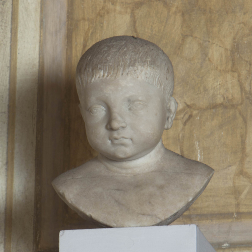 Il busto ritrae un bambino di pochi anni: l'età si evince dalle caratteristiche del volto pieno, con guance paffute e tenere e modellato morbido, reso con tratti sfumati, quasi pittorici.