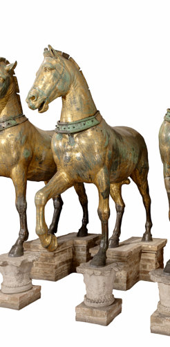 I cavalli furono presi a seguito della conquista di Bisanzio del 1204, durante la IV Crociata e inviati a Venezia dal doge Enrico Dandolo.