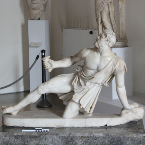 La scultura è stata notevolmente restaurata. Ritrae oggi un uomo caduto, che stringe nella mano destra l'elsa di una spada e poggia il braccio sinistro a terra a sostenere il corpo.