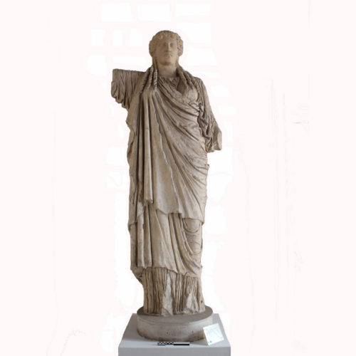 La statua ritrae una cariatide stante, il cui peso del corpo poggia sulla gamba destra, mentre la sinistra è flessa indietro. La testa, dall'ovale pieno con fronte ampia e triangolare, grandi occhi, naso dalla forma allungata, labbra carnose, è un rifacimento moderno sul modello di una analoga cariatide del museo (n. inv. 161), mentre originali sono i boccoli a torciglione che le ricadono sulla veste. Questa è costituita da un chitone aderente ed un himation che le si allaccia sulla spalla destra, portata verso l'alto a sollevare il braccio.