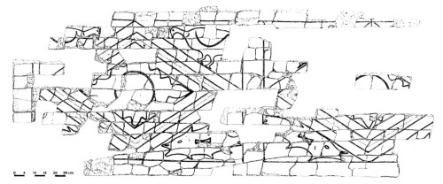 Il pluteo decorava il recinto del presbiterio che nel corso della V fase viene allargato e rialzato; esso era collocato nella parte laterale destra come indica la presenza in situ di incavi rettangolari con tracce per grappe in piombo, tra loro distanziati di cm 260.