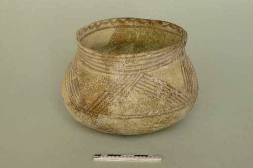 Sia la forma ("small jar") che la decorazione a gruppi di linee incrociate ("cross line style") sono tipici della "white painted ware V" del Cipriota Medio III. La cronologia proposta segue la datazione di P. Åström (The Middle Cypriote Bronze Age, Lund 1977, pp. 257-259) per la media età del Bronzo a Cipro.