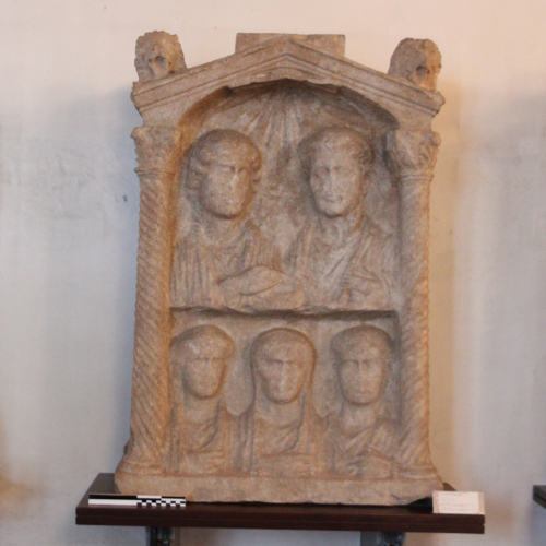 Nel registro inferiore si trovano tre individui, due donne a destra ed un uomo a sinistra, i cui tratti fisiogniomici corrispondono a quelli dell'ambito superiore, ad eccezione del ritratto centrale che si discosta dagli altri perché velato.