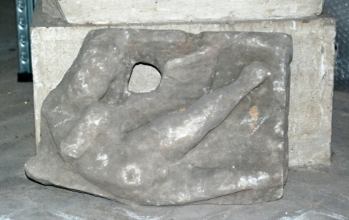 Il frammento apparteneva probabilmente a un sarcofago del tipo con Eroti e Vittorie in volo; per quanto scarsamente conosciuto in ambito cispadano, Francesca Ghedini non esclude che sia stato prodotto da un'officina locale.
