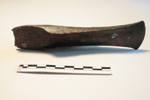 Ascia ad alette tipo Silea. L'ascia presenta una lama con alette molto sviluppate ed angolate superiormente, taglio espanso, tallone con incavo lievemente semicircolare ed apici ricurvi appena accennati. Si tratta di una foggia largamente diffusa in Italia settentrionale e lungo il versante adriatico durante l'età del bronzo finale. L'ascia di Torcello trova specifici confronti con numerosi esemplari dal Veneto centro-orientale e dal vicino Friuli. L'elevato numero di esemplari rinvenuti nei dintorni di Treviso consentirebbe di ipotizzare l'esistenza di un'officina metallurgica attiva tra l'XI e il X secolo a.C.da cui potrebbe provenire la stessa ascia di Torcello. La superficie presenta una patina di colore verde chiaro.