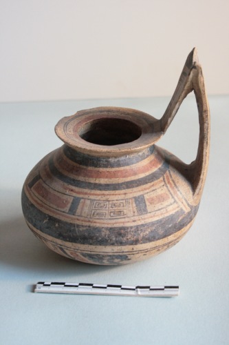 cm. con ansa 14,6; senza ansa 9,1 x bocca: 8,1; base: 7,2
