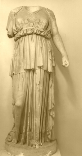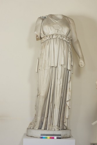 La statua ritrae una figura femminile stante, che poggia il peso sulla gamba sinistra, lasciando la destra lievemente flessa verso l'esterno. Indossa un peplo pesante, dalle pieghe colonnari, che però aderisce al corpo sul petto e in corrispondenza della gamba destra. Sul petto portava forse una medusa come sembra indicare la lacuna presente.