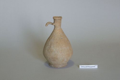 orlo a fascia, collo cilindrico, ansa a nastro, corpo biconico con diametro massimo poco sopra il basso piede ad anello