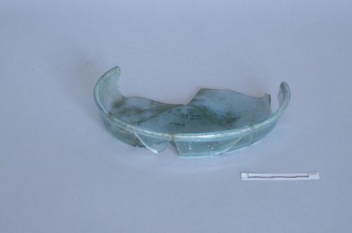 labbro a cordoncino con orlo ripiegato all'esterno, corpo troncoconico, fondo piano indistinto, leggermente concavo al centro; vetro incolore