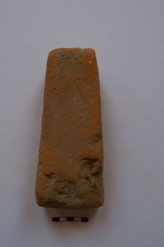peso da telaio troncopiramidale, con foro pervio sulla sommità, con faccia anteriore decorata da motivo geometrico non ben leggibile
