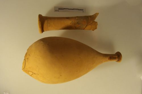 ventre piriforme con sottile puntale con terminazione a disco; collo diritto e orlo ingrossato