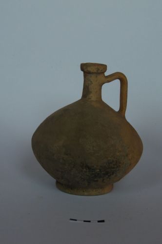 ventre globulare schiacciato, collo diritto e orlo a fascia; ansa a nastro e basso piede a disco