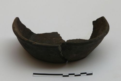 orlo indistinto, vasca troncoconica con pareti svasate, fondo piano. Corpo ceramico molto grossolano con grossi inclusi affiornati anche sulle superfici