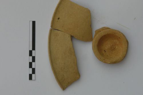 è probabile che si tratti di una produzione locale che sembra ispirarsi alla forma Morel F 2653 della vernice nera. Per le ceramiche comuni di produzione locale è stata creata una tipologia interna allo scavo; i confronti con materiali di aree limitrofe sono sempre solo indicativi