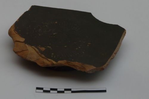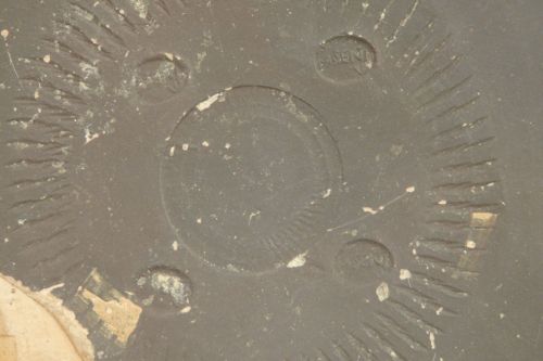 si tratta forse, come suggerirebbe la presenza dei marchi nominali, di un prodotto uscito dall ultime fabbriche di vernice nera di Arezzo, o comunque del centro Italia. La famiglia dei Sentii è nota nella tarda età repubblicana con personaggi di spicco come G. Sentius Saturninus, prima proscritto dai triumviri all'indomani dell'assassinio di Cesare e poi fedele alleato di Ottaviano